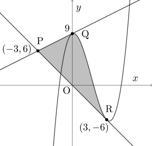 2023.08.18記 [4] 平面で点 を通り,曲線 ……(1) に接する直線のうち,接点の 座標が をみたすものを , とする.ただしこれらの直線は点 , において曲線(1)に接するものとする.このとき曲線(1)の点 から点 までの部分と,線分 ,線分 で囲まれた領域の面積…